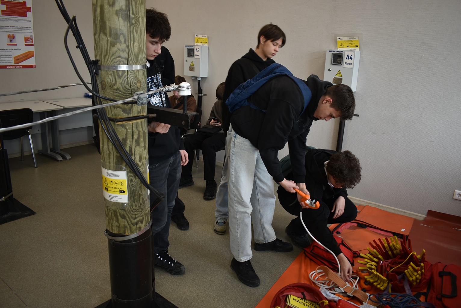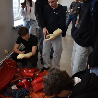 Студентам напомнили об электробезопасности и о мерах защиты человека от поражения электрическим током, а также продемонстрировали средства индивидуальной защиты, необходимые для обеспечения безопасной работы.
